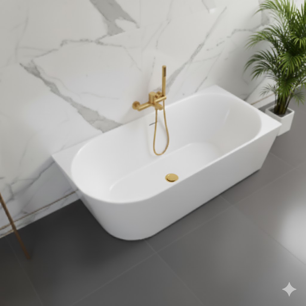 Sanitary grade fade resistant non-porous acrylic bath with reinforced steel frame and adjustable feet.  Available in left or right hand options.